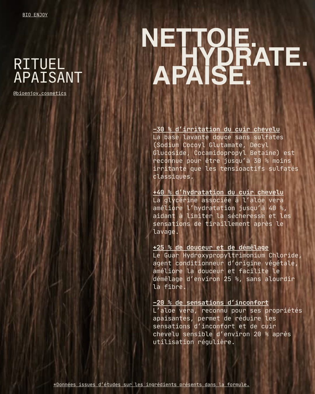–30 % d’irritation du cuir chevelu grâce à une base lavante douce sans sulfates.